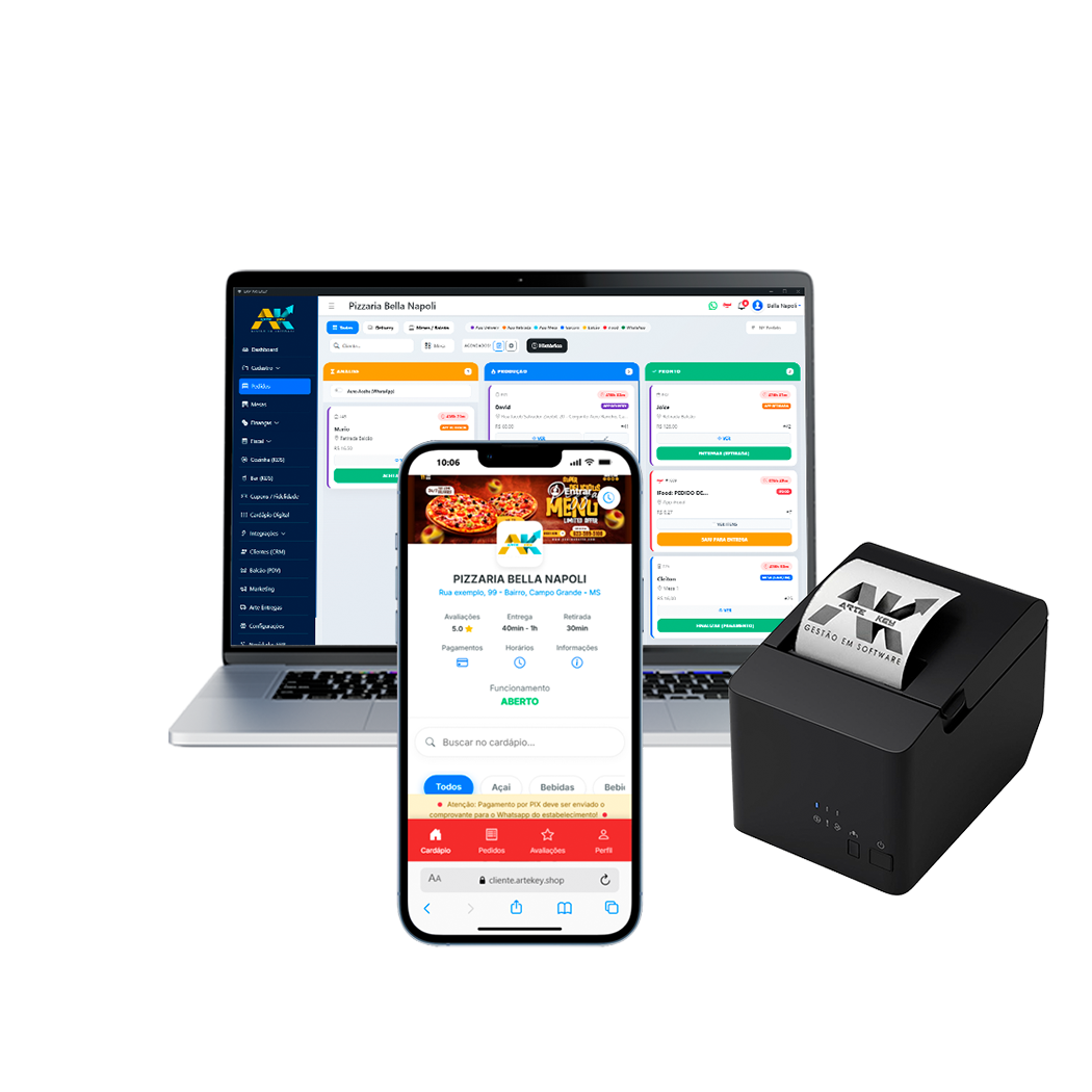 Do pedido na mesa até a cozinha. O ArteKey elimina a confusão de comandas de papel, agiliza seu atendimento e reduz desperdícios com controle de estoque preciso.